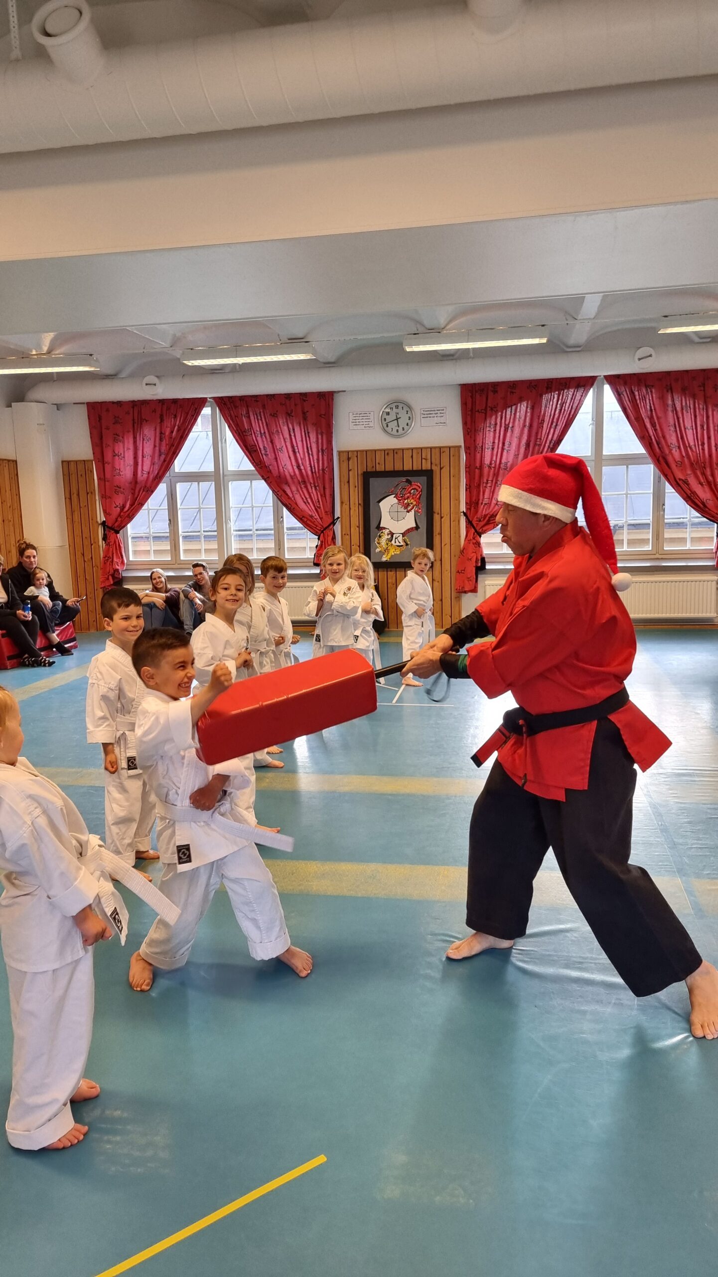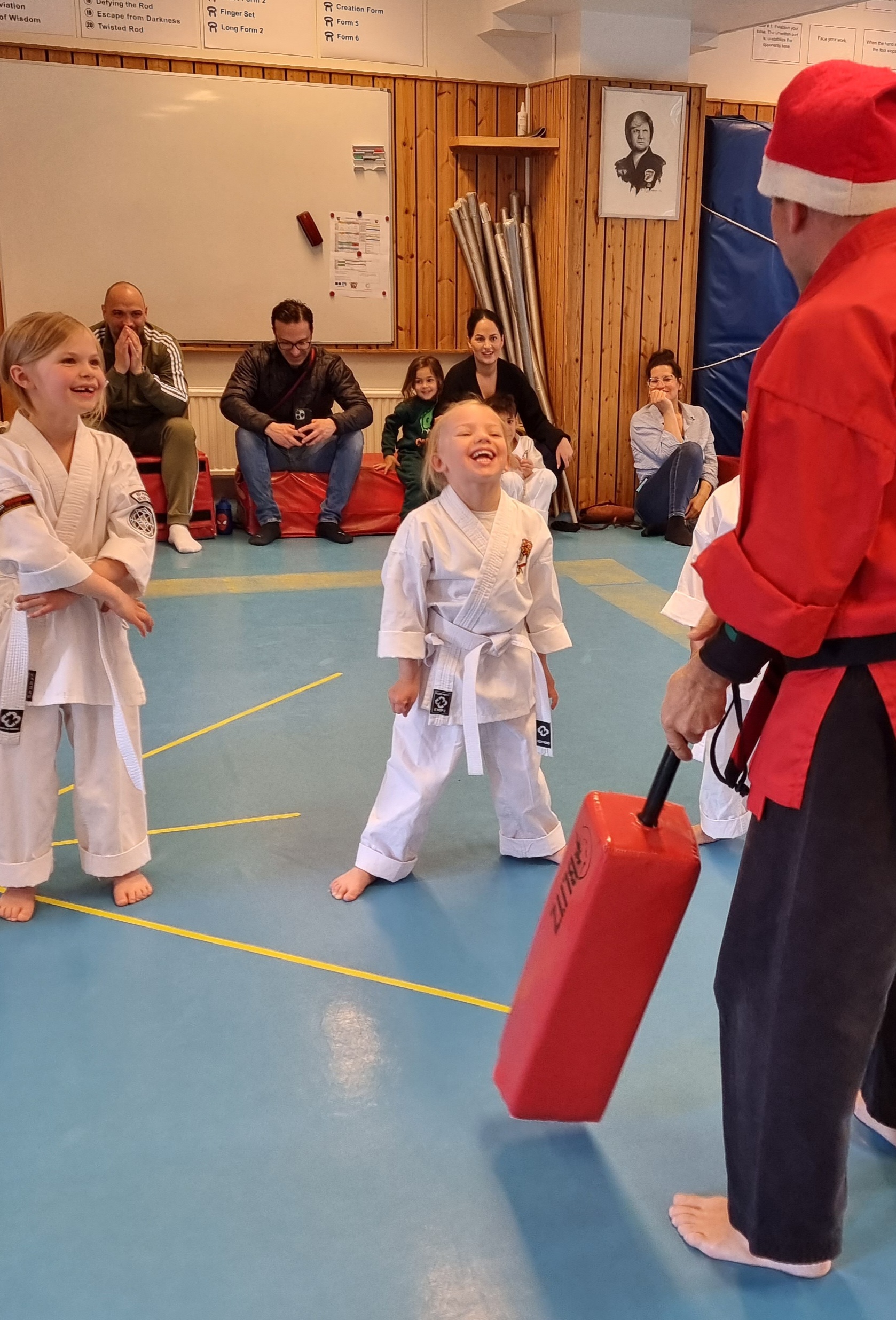 Den 27 april hölls avslutning med klubbens minsta grupp Small Kenpo Tigers barn 5-6 år. Barnen visade upp sina fördigheter och skrattade när klubbens huvudinstruktör kollade deras kunskaper utklädd till tomte. Vi gratulerar barnen för fantastisk rolig termin och hälsar dem välkomna till nästa termin. Ett stort tack till Madeleine Lindergren och Ida Forsström för ett jättebra jobb med barnen
